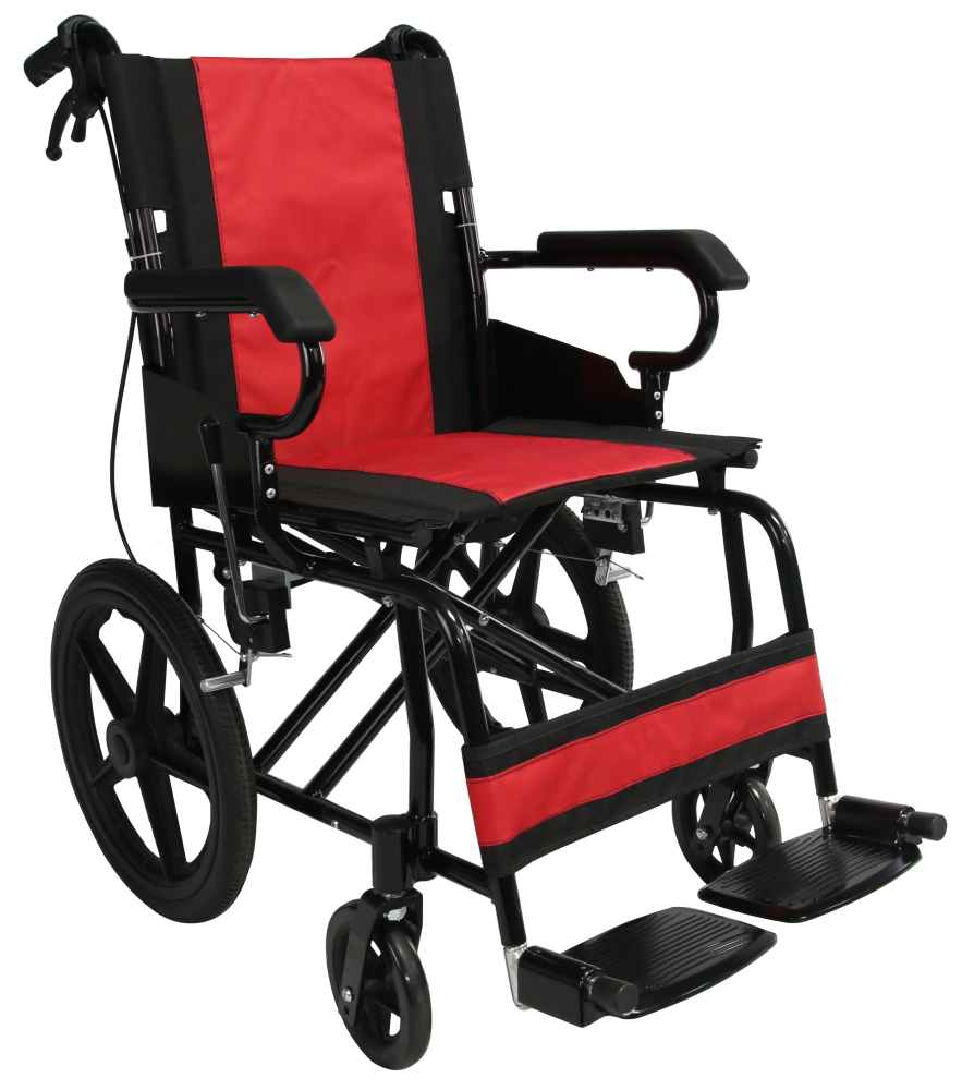 كرسي متحرك خفيف الوزن من Care Zone Medical يمثل حلاً مثالياً لتنقل كبار السن بتصميمه العصري والأنيق باللون الأحمر مع الأسود مما يجعله جذابًا وسهل الاستخدام تم تجهيز هذا الكرسي بعجلات صغيرة توفر تحكمًا أفضل وسهولة في الحركة داخل المساحات الضيقة مما يساعد على تعزيز استقلالية المستخدمين.