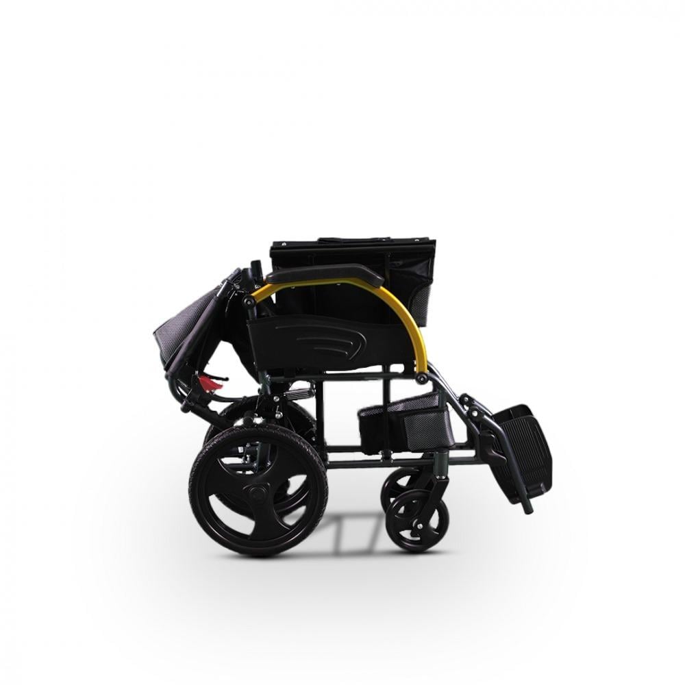 • كرسي متنقل لكبار السن تصميمه القابل للطي يضمن سهولة الحمل والتخزين، مما يجعله مثاليًا للسفر.